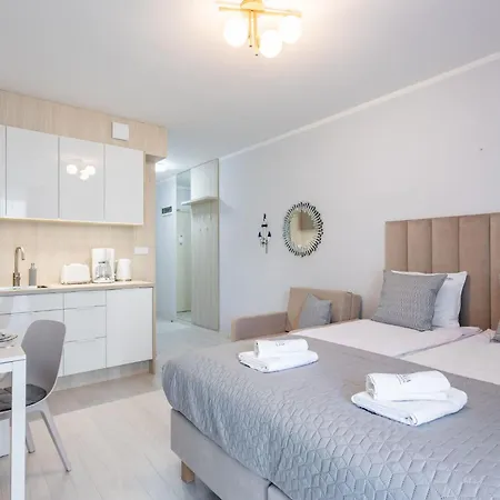 Lejlighed ligger inden for 2 km fra Stawa Młyny og i nærheden af Baltic Park Molo Aquapark by Zdrojowa. Kristus Kongens Kirke er 19 minutter væk til fods. Restauracja Industrialna tilbyder Europese gerechten måltider inden for 400 meter fra indkvarteringen. Det tager ikke lang tid at komme til Fort Anioła i bil.